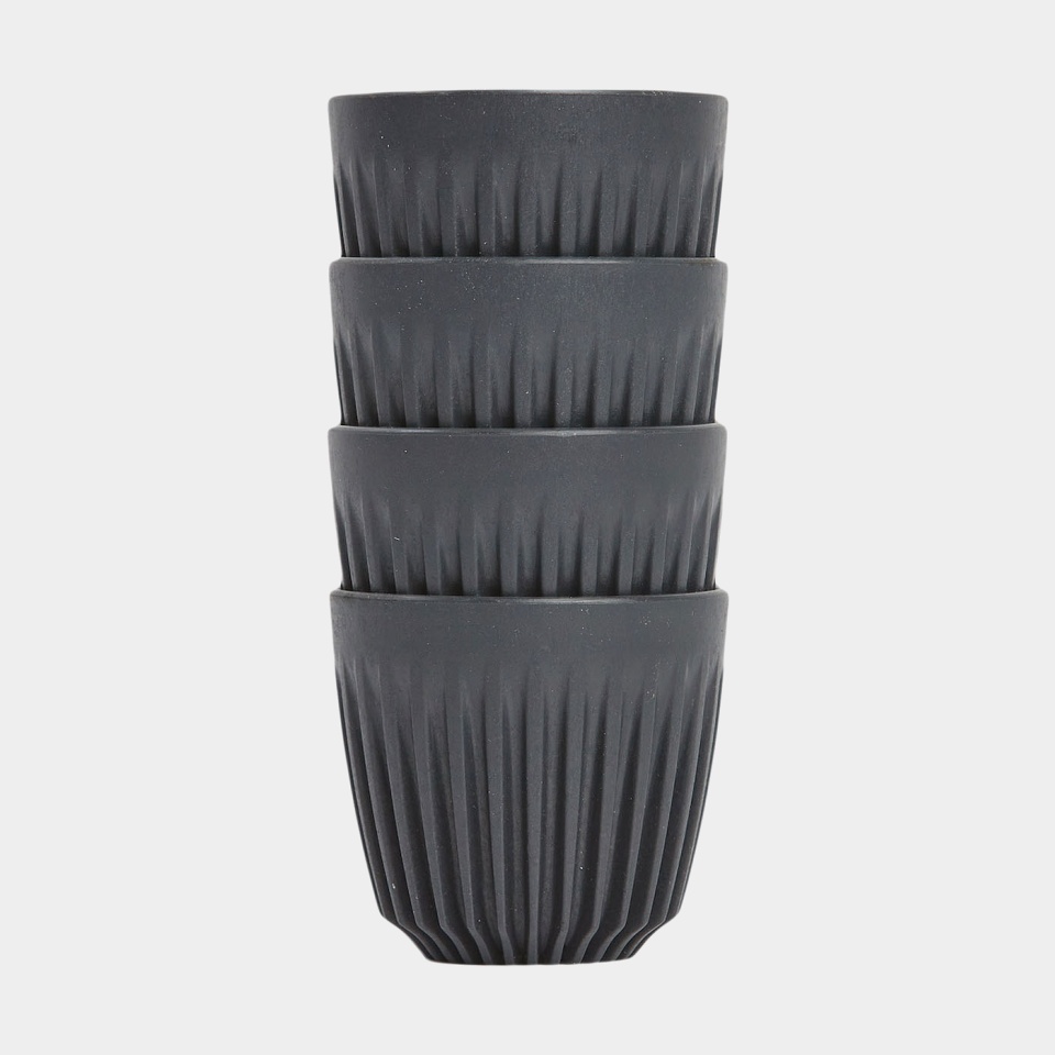 Kaffekopp HuskeeCup 8oz Charcoal, återvunnet kaffeskal, svart, 23.5 cl / 235 ml, 4-pack