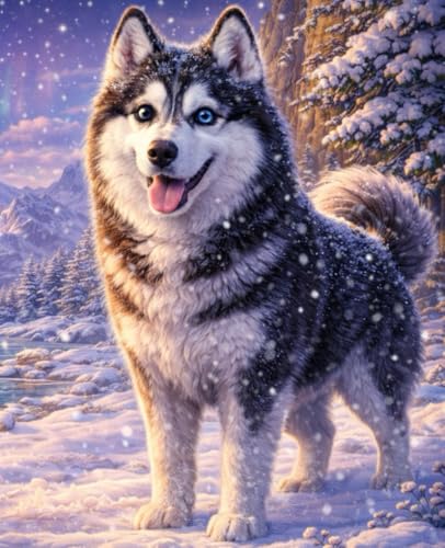 YSCOLOR Diamond Painting 5D Diy Diamantmålningstillbehör Hund 3D Diamantbroderi Valpen Ler Mosaikritningar Husky Målningar Djurbild 30X40cm