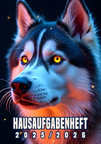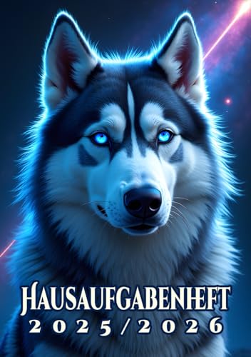 Hausaufgabenheft 2025/2026 mit Datum, Husky Design für Jungen & Teenager: Schülerkalender für Grundschule und Gymnasium - Schulplaner für Schüler mit Hund Motiv, Hausaufgabenplaner DIN A5