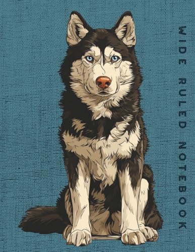 Wide Ruled Notebook: Black Siberian Husky Dog
