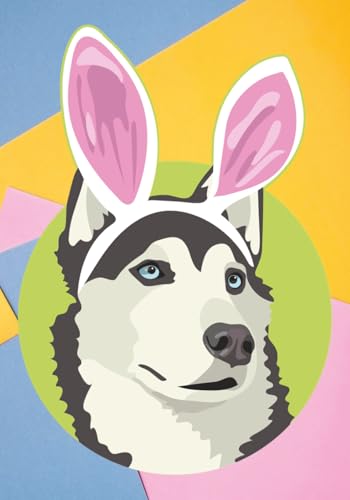 Siberian Husky Dog Wears Rabbit Ears Notebook - 7" x 10" Size - 150 Pages - Wide Rule - Pink Pastels For Easter