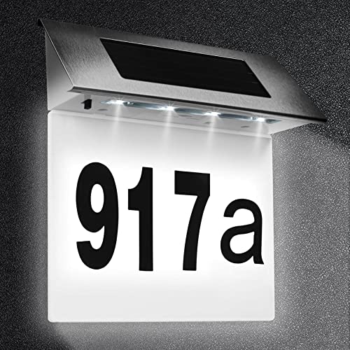 COEKI Solbelyst rostfritt stål husnummer 4 LED solhus nummer med utomhus vattentät IP65 skymningsbrytare med siffror 0–9 & bokstäver A-H