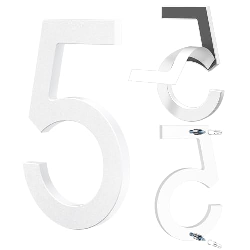 Yafimea Husnummer 15 cm vitt, Självhäftande eller skruvmontering, modern svävande 3D-design, väderbeständig plast för yttervägg eller staket (5)