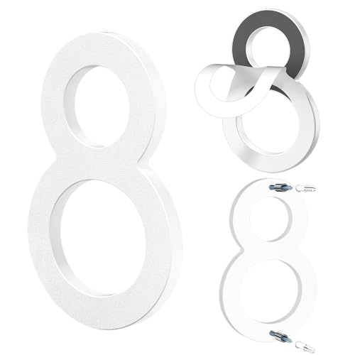 Yafimea Husnummer 20 cm vitt, Stor siffra för utomhusbruk med svävande 3D-effekt, modern design i väderbeständig ABS-plast, skruvmontering (8)