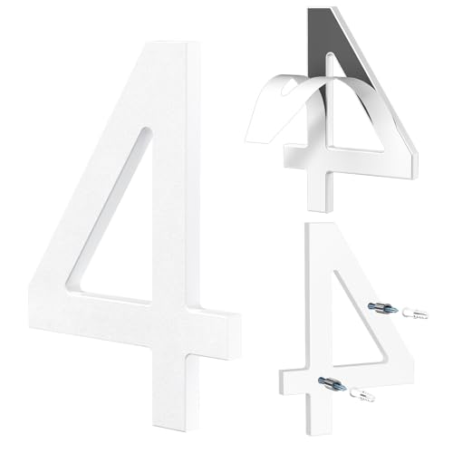 Yafimea Husnummer 15 cm vitt, Självhäftande eller skruvmontering, modern svävande 3D-design, väderbeständig plast för yttervägg eller staket (4)
