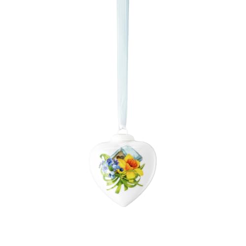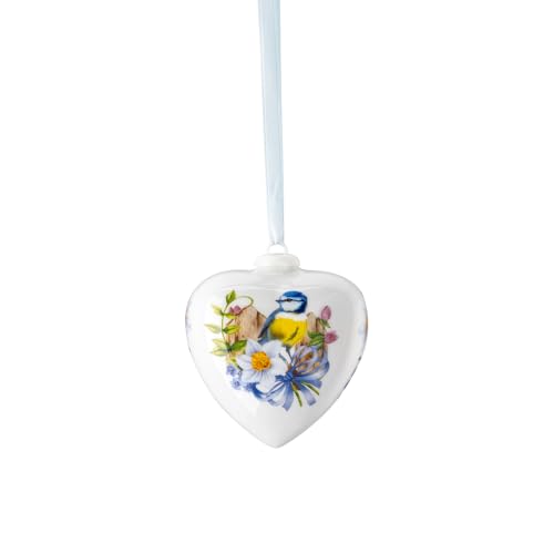Hutschenreuther porslinshjärta 2025, porslinshjärta att hänga upp, höjd 7 cm, samlareledition påsk, porslin flerfärgad, motiv blåmese