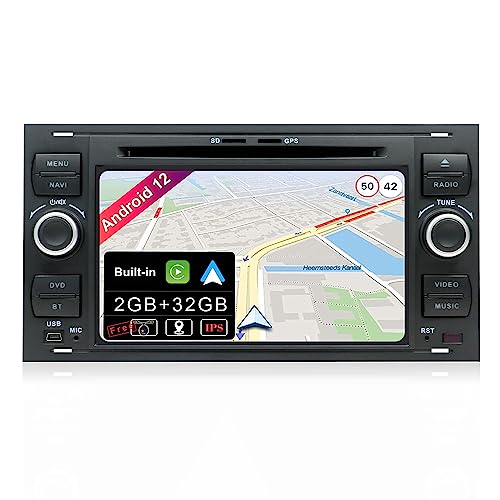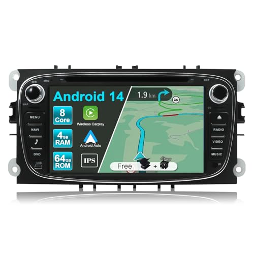 JOYX Android 10 bilstereo huvudenhet för Ford C-Max/Connect/Fiesta/Focus/Fusion/Galaxy/Kuga S-Max/Transit/Mondeo Schwarz | Gratis kamera Canbus extern mikrofon | 2G+32G | GPS 2 Din |7 tum |WIFI 4G DAB SWC