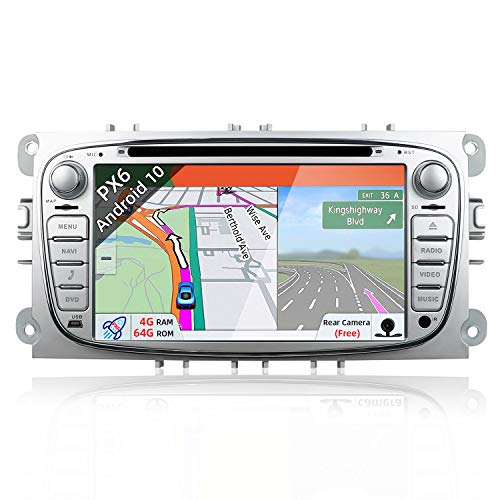 JOYX PX6 Android 10 Double Din bilstereo huvudenhet passar för Focus/Mondeo/S-Max/C-Max/Galaxy GPS-navigering | Gratis kamera Canbus | 4G + 64G | 7 tum | Stöder WIFI BT5.0 SWC HDMI 4K-Video 4G DAB Carplay