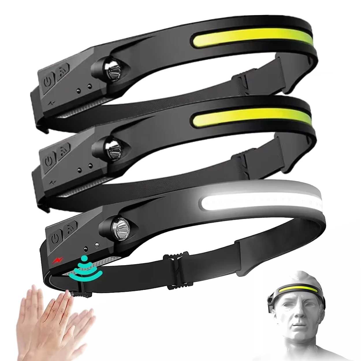Hismart Huvudlampa Cob +Xpe, Med Rörelsesensor, 350Lm, Ipx4, Usb-C