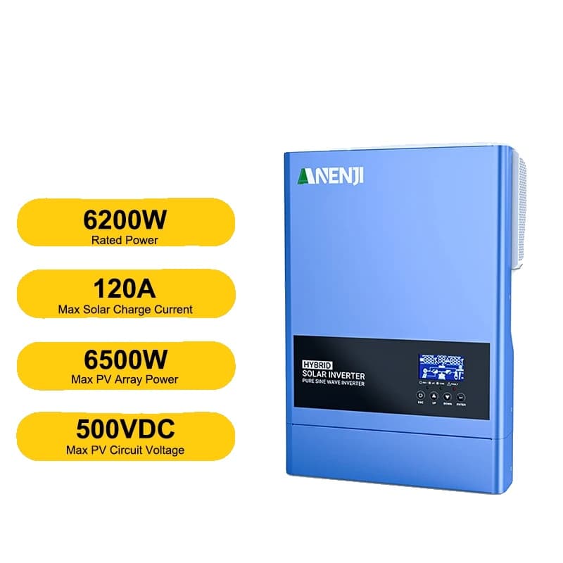 Hybrid sol inverter, 6.2KW/4.2KW nominell effekt, MPPT 120A laddningsström,6,2KW 48V-varm, 220-240V, Inget wifi