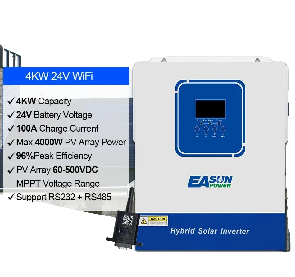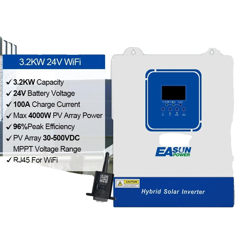 Hybrid sol inverter, 3200W och 4200W effektutgång, dubbel PV-ingång,Med WIFI, 4,2 kW 24V