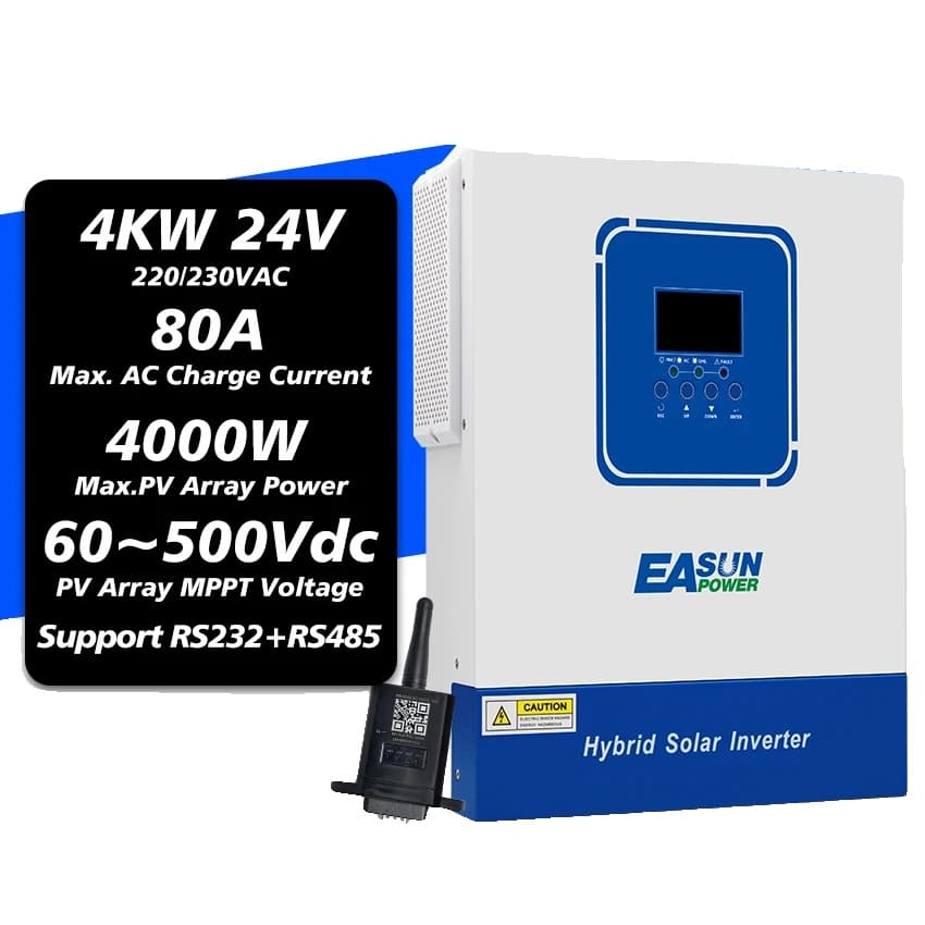 Hybrid solcell inverter, utgångseffekt, PV-array effekt,4KW 24V WiFi