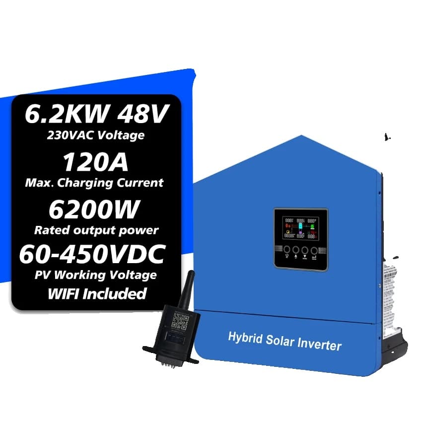 Hybrid sol inverter, 6200W effektklass, 120A MPPT-regulator,wifi-modell