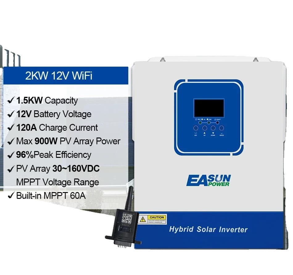 Hybrid sol inverter, 96% topp effektivitet, överbelastningsskydd,2KW-WIFI