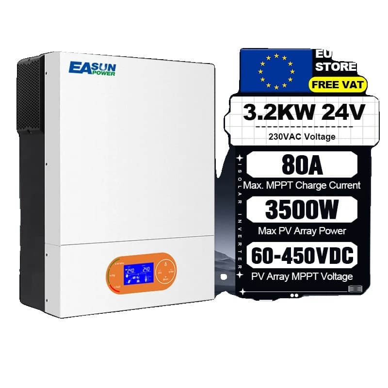 Hybrid sol inverter, 2KVA utgång, 80A MPPT laddningsregulator,3,2KVA 24V, 220-240V, Med WIFI