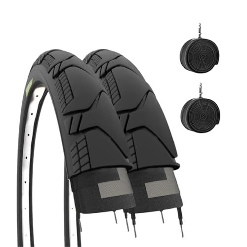 Fincci Grus däck 700 x 38c med 2 x Schrader Air Chamber 40–622 - hopfällbart par däck 28 x 1,5 tum med 1 mm punkteringsskydd 30 TPI för turné och elektrisk & väg och hybrid och mountainbike cyklar