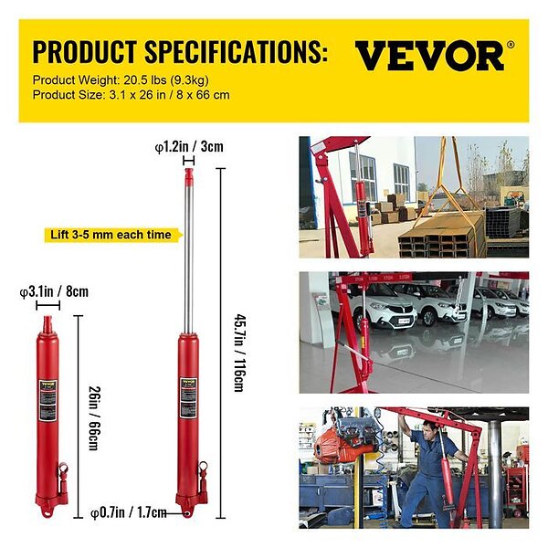 VEVOR Hydraulisk lång ram domkraft 4 t
