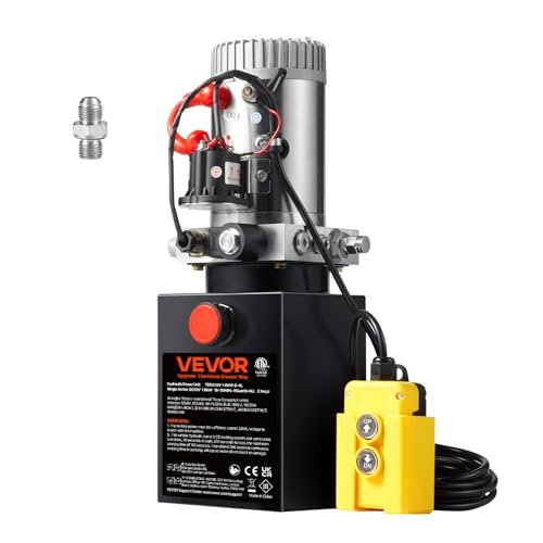 VEVOR 10 Qt Hydraulisk enhet enkel tippvagnspump, maximalt öppningstryck 22 MPa och flödeshastighet 3,4 l/min, 12 V DC hydraulpump med metallbehållare för tippvagn, svart