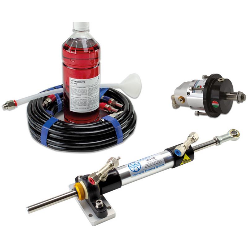 Seastar kit för drev, SeaStar hydraulstyrning med cylinder för drev som ger en enkel installation. Säljs som komplett sats där rattpump, cylinder för drev, 12 meter nylonslang och 2 liter olja ingår.
