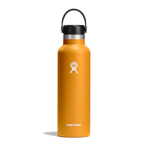 Hydro Flask - Water Bottle 621 ml 21 oz - Vacuum Insulated Stainless Steel with Straw Cap - Standard Mouth - Fossil