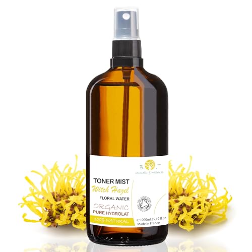 B.O.T Cosmetic & Wellness – ekologisk hassel blomvatten hydrolat | ansikts-, kropps- och hårvatten | naturlig sminkborttagning | bas för naturkosmetik, klar, 1 l