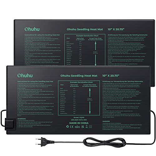 Ohuhu Växt värmematta 25 x 52 cm 2 paket, IP67 vattentät växter Hydroponisk värmedyna för inomhusplantor och groning, 21W växtvarmmatta