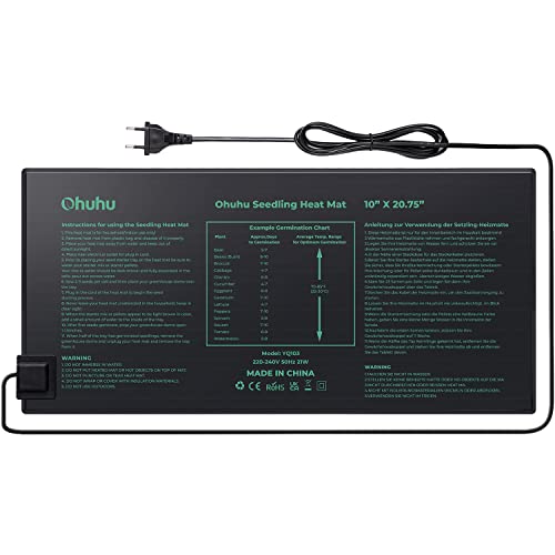 Ohuhu Växt värmematta 25 x 52 cm, IP67 vattentät växter Hydroponisk värmedyna för inomhusplantor och groning, 21W växtvarmmatta