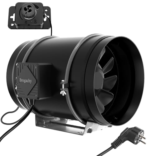 Brogachy Justerbar kanalfläkt 200 mm, frånluftsfläkt för uppvärmning Kylning Booster Grow-tält Hydroponisk hemanvändning Ventilation och frånluftsfläkt.