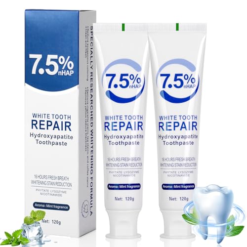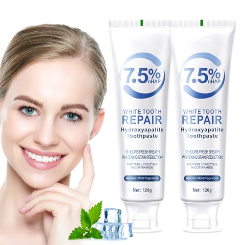 Feeliville Hydroxyapatit tandkräm för emaljskydd, 7,5 % hydroxiapatit, fluoridfri mintformel för vuxna, reparerar och skyddar tänder, stärker emaljen (2-pack)