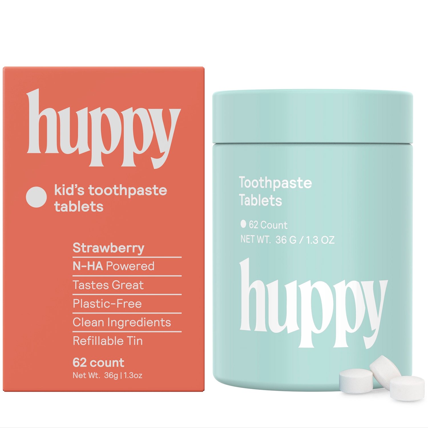 Naturlig Hydroxyapatit tandkräm Tabletter HUPPY Xylitol Watermelon & Strawberry Refill 62 st.