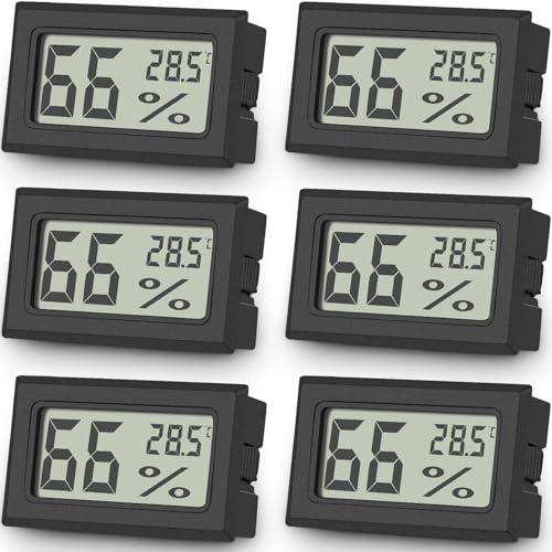 Hydrometer med termometer, minihygrometer digital, ℃/℉ justerbar hygrometer inomhus, för hem, skola, vingår, växthus, källare, lager 【6 st】