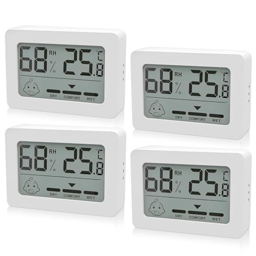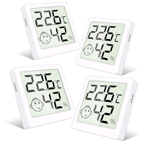 HOSPAOP Termometer hygrometer inomhus digitala, 4 miniluftfuktighetsmätare rumstermometer inomhus med smiley-indikator, rumstermometer för babyrum, vardagsrum, rum, kontor, vit, FU40