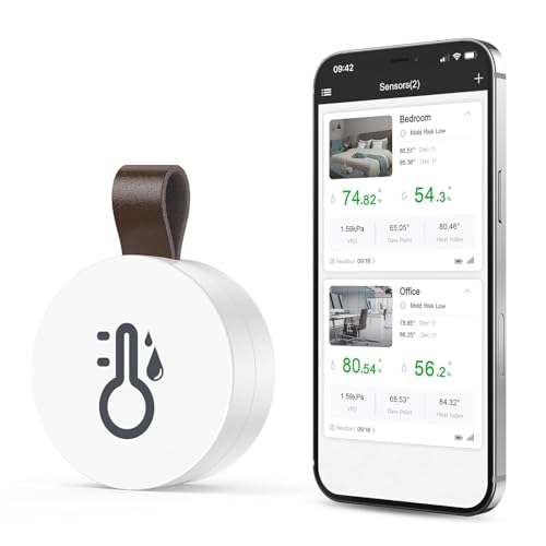 WiFi termometer hygrometer inomhus, mini termometer rumstermometer med appfjärrkontroll, temperaturfuktighetsmätare med datalagring för växthus, kompatibel Alexa Google Home 1st