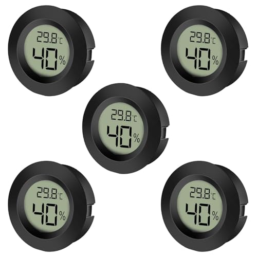 5-pack LCD digital hygrometer termometer, inomhus utomhus luftfuktighetsmätare temperaturmätare för luftfuktare luftavfuktare växthus källare babyrum, svart rund