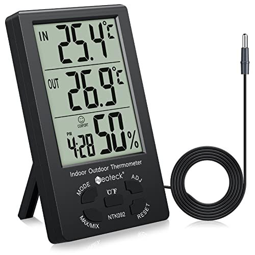 Neoteck Termometer hygrometer LCD digital inomhus utomhus hygrometer fuktighet termometer temperaturmätare min/maxvärde 1,5 m sensortråd för hantering av luftkonditionering kontor hotellrum svart