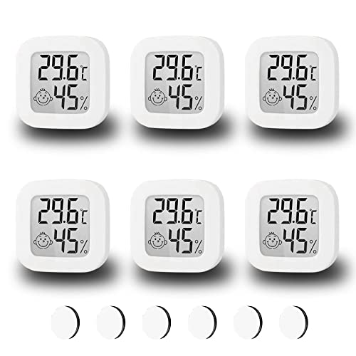 Digital termometer/hygrometer för inomhus, 6 miniluftfuktighetsmätare/rumstermometrar med smiley-indikator och temperatur, för babyrum, vardagsrum, rum och kontor, vit