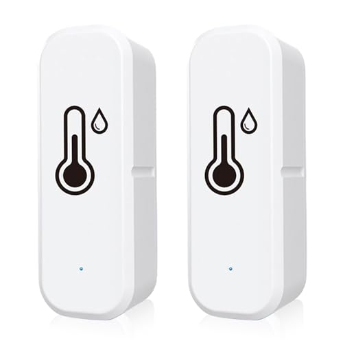 Sporgo WiFi-termometer hygrometer inomhus, 2 stycken WLAN-fuktighetssensor temperatursensor med Smart Tuya App, datainspelning och meddelandelarm, trådlös termometer för inomhus- och utomhusbruk