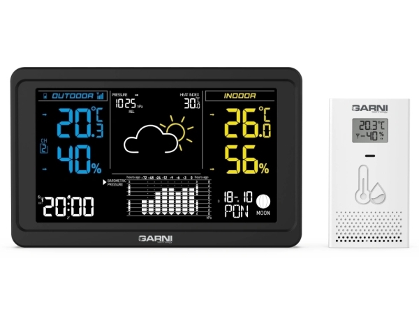 Garni 618B Precise, Svart, Vit, Inomhusbarometer, Inomhushygrometer, Inomhustermometer, Utomhusbarometer, Utomhushygrometer,..., Barometer, Hygrometer, Termometer, 10 - 99%, 10 - 99%, 2%