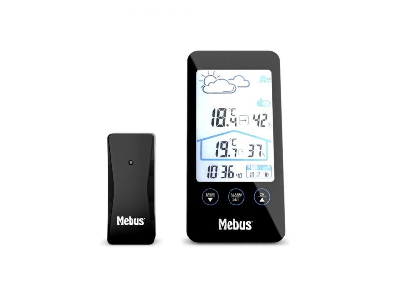 Mebus 11908, Svart, Inomhushygrometer, Inomhustermometer, Utomhushygrometer, Utomhustermometer, Hygrometer, Termometer, Hygrometer, Termometer, Batteri, Aaa