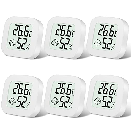 Flintronic Digital hygrometer termometer, 6 st mini inomhus hygrometer termometer, LED-display med komfortlogotyp för miljötermometer för kontor babyrum trädgård (vit)
