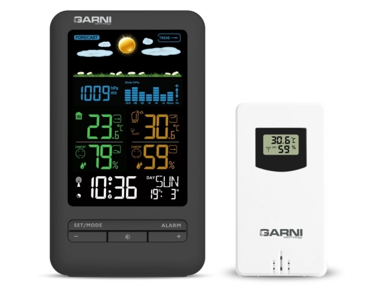 Garni 525, Svart, Silver, Inomhusbarometer, Inomhushygrometer, Inomhustermometer, Utomhushygrometer, Utomhustermometer, Barometer, Termometer, Hygrometer, Termometer, 20 - 99%, 20 - 99%
