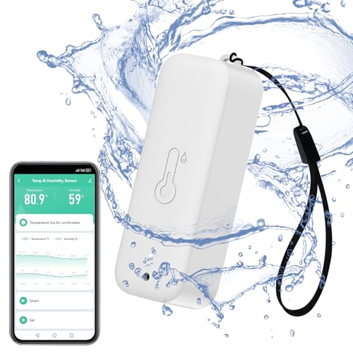 Smart hygrometer/termometer: vattentät fuktighets- och temperaturmätare med appaviseringar, självmagnetisk och wifi-sensor, för inomhusbruk, kompatibel med Alexa, 1-pack