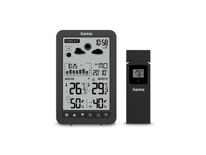 Hama Ko Samui, Svart, Inomhusbarometer, Inomhushygrometer, Inomhustermometer, Utomhushygrometer, Utomhustermometer, Barometer, Hygrometer, Termometer, Barometer, Hygrometer, Termometer, 20 - 95%, 1%