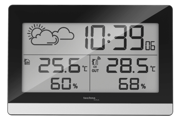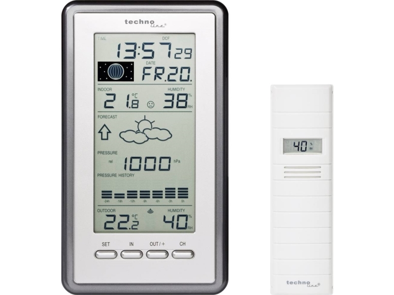 Technoline Ws 9255, Svart, Silver, Inomhushygrometer, Inomhustermometer, Utomhushygrometer, Utomhustermometer, Hygrometer, Termometer, Hygrometer, Termometer, F, °C, 30 M