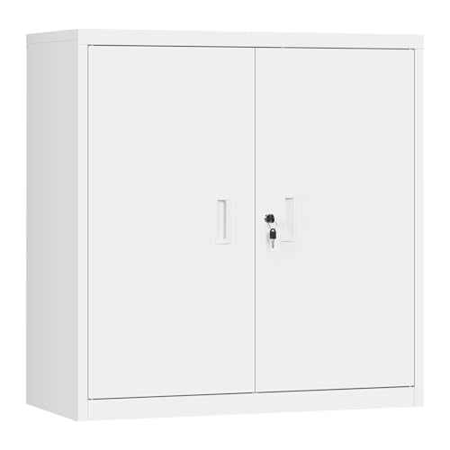 WOLTU Förvaringsskåp med lås och höjdjusterbar hylla, multifunktionellt kontorsskåp i metall, vit, B 90 x H 92 x D 40 cm