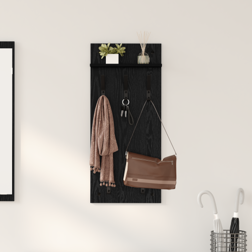 Väggmonterad Klädhängare med hylla Svart ek 90 x 40 x 10 cm