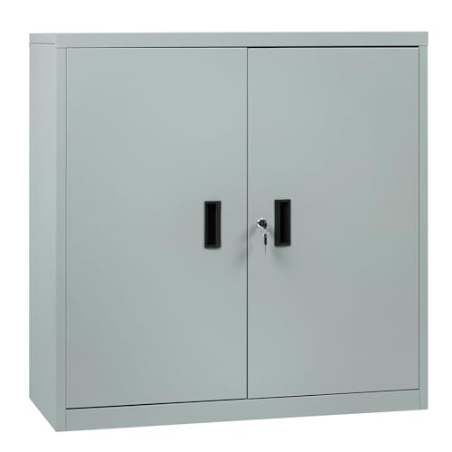 WOLTU Låsbart arkivskåp, mappskåp med höjdjusterbar hylla, metallskåp med lås, kontorsskåp förvaringsskåp universalskåp, grå, B 90 x H92 x D 40 cm, ASK12 gr