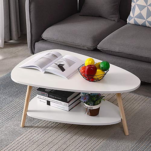 Willonin Skandinaviskt soffbord, modernt ovalt soffbord, vardagsrumsbord med hylla, sidobord i trä, soffbord, sovrum, kontor, kaffe, 90 x 60 x 40 cm (vit)