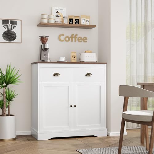 GarveeHome Köksbuffé med 2 dörrar och 2 lådor, 80 x 40 x 90 cm – byrå med bänkskiva och justerbar hylla för kök, matsal och vardagsrum, vit