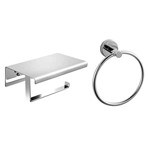 EMKE Handduksring för badrum och toalettpapper rullhållare med hylla, rostfritt stål väggmonterad handduk rullhållare och handduksring badrumstillbehör set 2 st för kök och badrum, krom